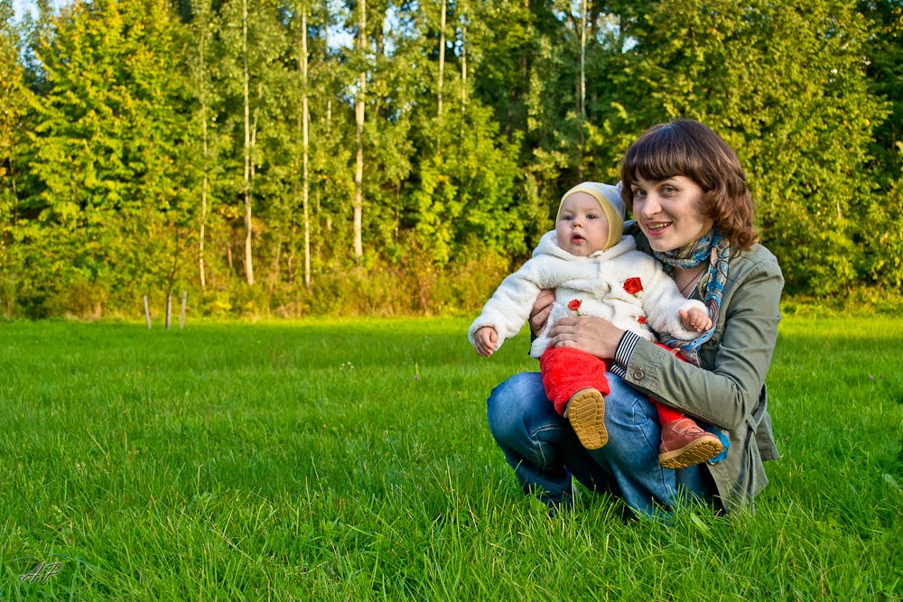 В итоге ухватили за хвост первый же удобный для нас теплый солнечный денек и, хотя золотой листвы пока явно вокруг не наблюдалось, по-моему, у нас получились кое-какие интересные фото. ;)